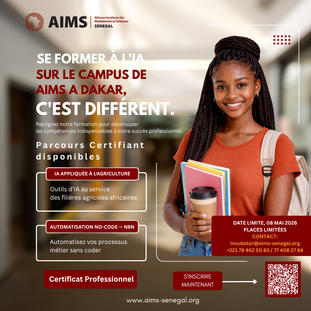 The future of work is unfolding now, powered by artificial intelligence and digital transformation. To meet this moment, AIMS Senegal is launching its new Professional Certification Programs at the Dakar campus, specifically designed to bridge the gap between advanced technology and real-world industrial impact. By choosing to train with us, you aren’t just attending a class; you are experiencing a unique pedagogical approach that prioritizes the high-demand skills necessary to lead in today’s digital economy.